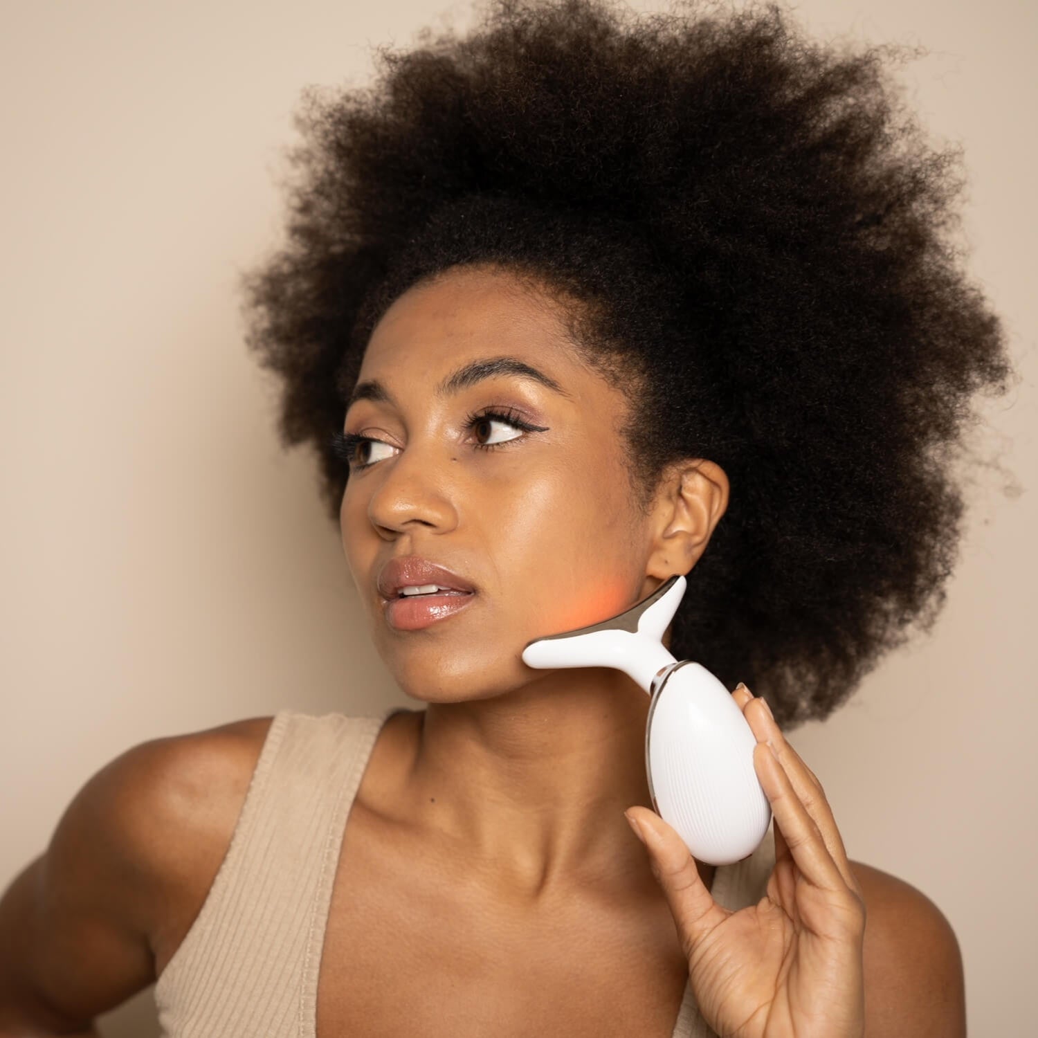 VBEAUTY RadiantLift Pro – Dein All-in-One-Pflegegerät für Gesicht und Hals. Mit 7 LED-Farben, die jeweils mit Reinigungs- und Vibrationsmodus kombiniert werden können, bietet es insgesamt 27 Funktionen, um Falten zu reduzieren, die Haut zu straffen und Pflegeprodukte optimal wirken zu lassen. Drei Intensitätsstufen passen sich individuell an Deine Bedürfnisse an.